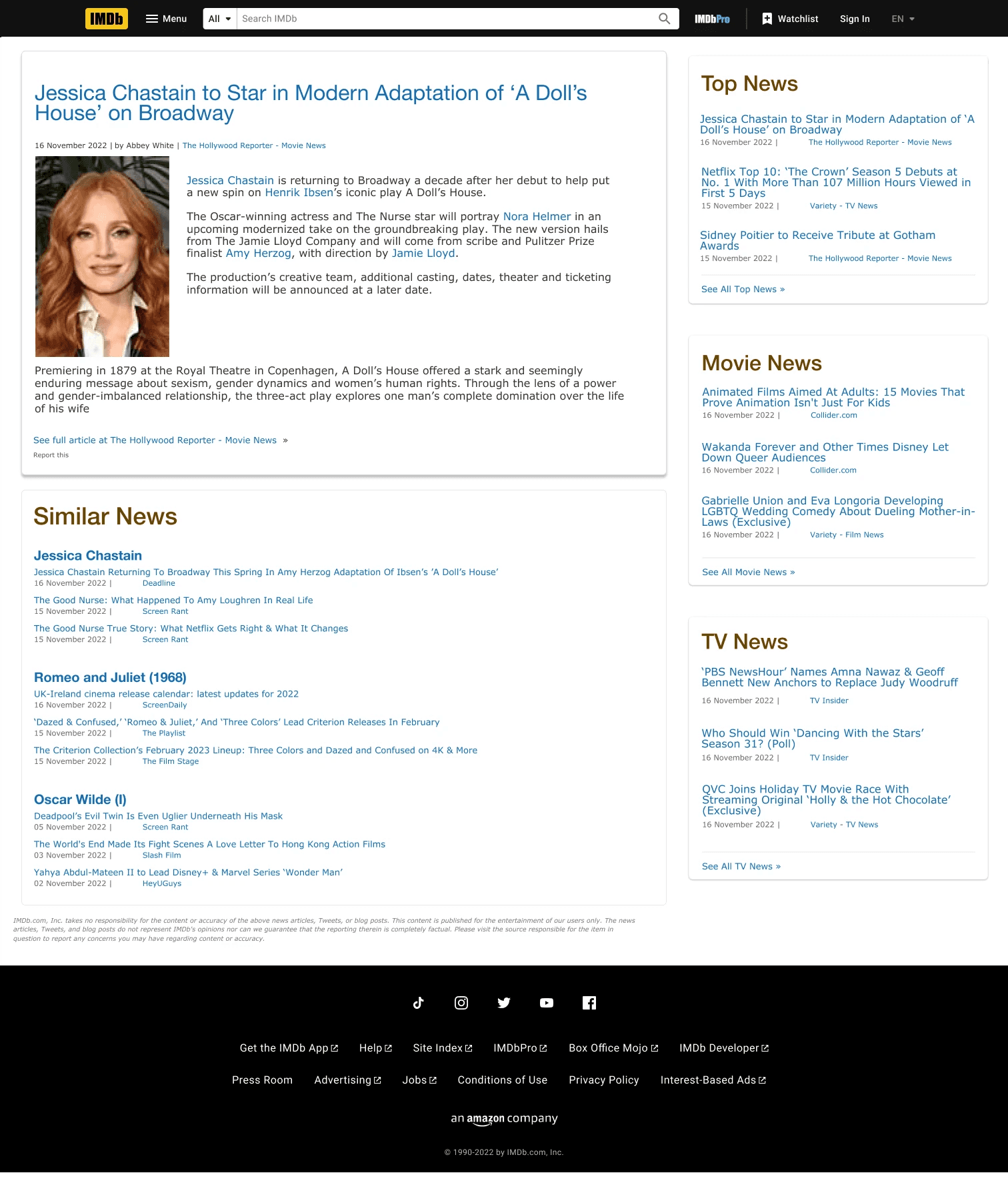 The original user interface of the IMDb "News" section suffered from significant visual noise and a lack of information grouping, which directly impeded the user’s ability to consume content. The absence of a clear typographic hierarchy resulted in high cognitive friction, as the feed felt more like a raw data feed rather than a curated news destination.