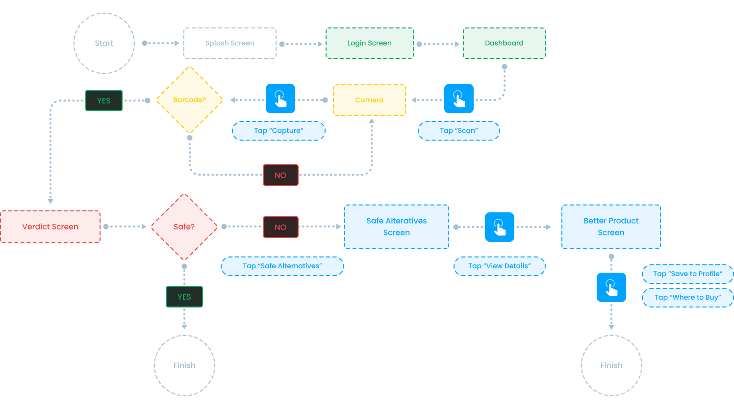 Execution (Data Interpretation): The core product value lies in its integration with AI translation layer. I designed a logic flow where the AI scours verified databases to translate industrial chemicals and ingredients into plain-English definitions, providing users with instant clarity and peace of mind.