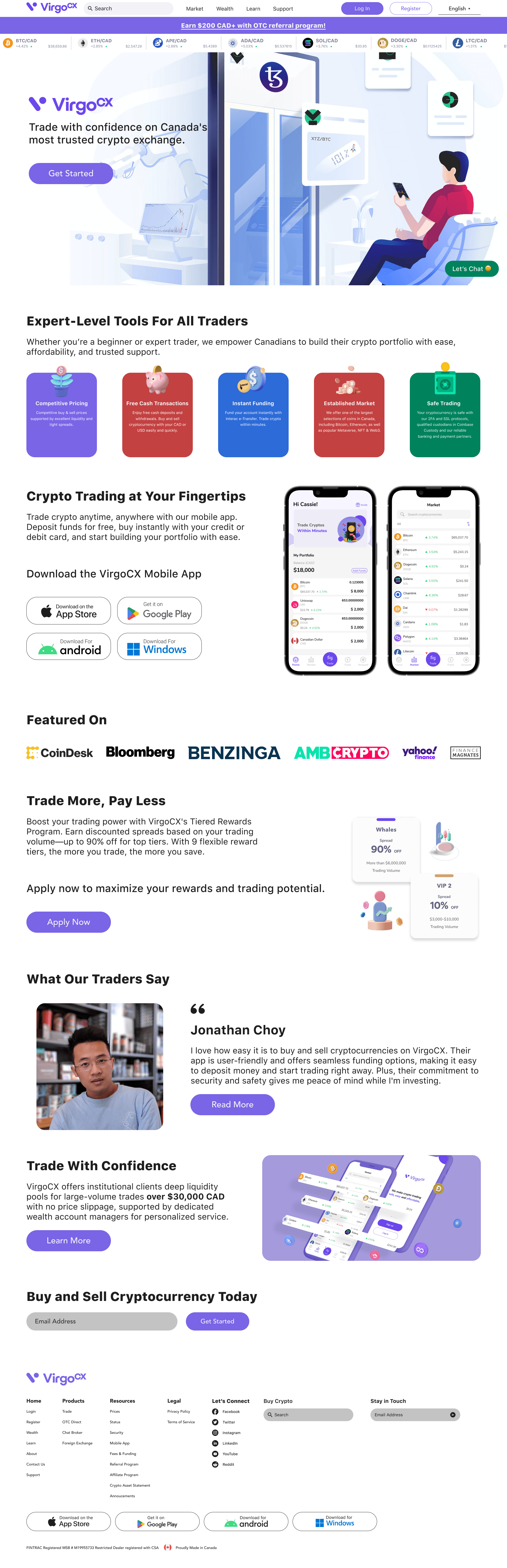 When conducting research for the VirgoCX UI redesign, I analyzed leading competitors in the Canadian and global crypto/FinTech landscape—including Coinbase, Kraken, Gemini, and Wealthsimple—to identify common design patterns and emerging industry standards.